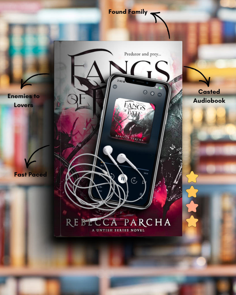 I’ve been venturing more and more into romantasy so was immediately interested in this one when I read the blurb, so jumped at the chance to listen to the casted audiobook. Be prepared for a fast moving story, told from dual POVs of Tate and Chance. We’re immediately introduced to a world where vampires are a dominant power, but still move in the shadows in a lot of ways. We immediately know that there are multiple factions at play and that something very wrong is coming to a head.